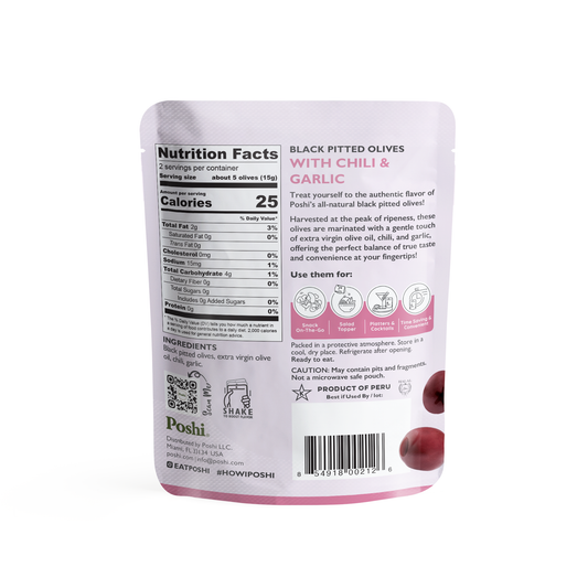 Poshi Snacks - Chili & Garlic Pitted Black Olives 1.1oz/10