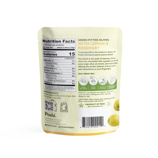 Poshi Snacks - Lemon & Rosemary Pitted Green Olives 1.1oz/10