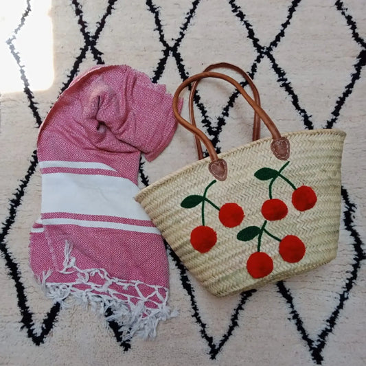Cherry Beach Basket Bag, French Basket Market Bags