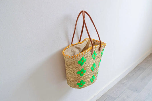 • Green Daisy Beach Basket Bag, French Basket Market Bags