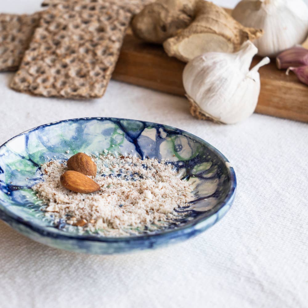 Handmade Ceramic Grater Dish Blue Green Watercolor