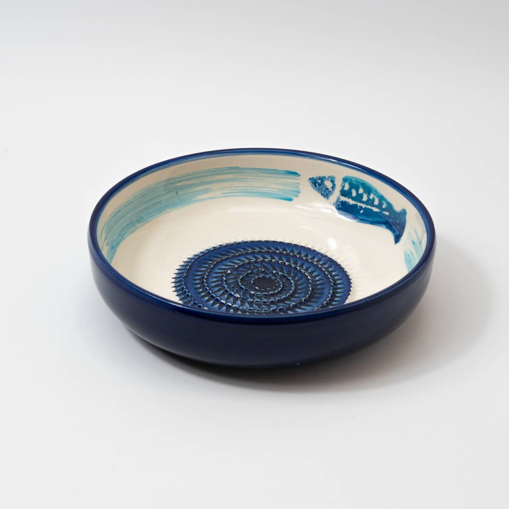 Handmade Ceramic Grater Bowl Blue Fish