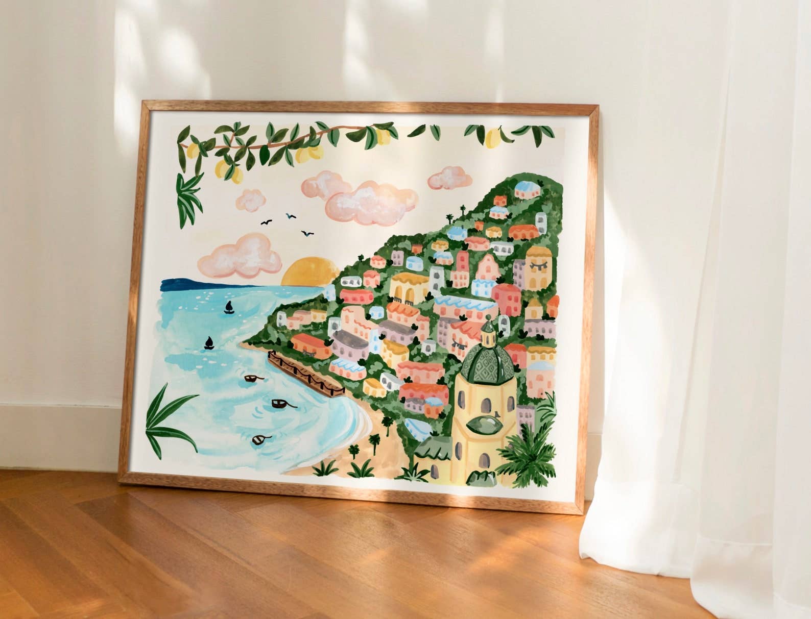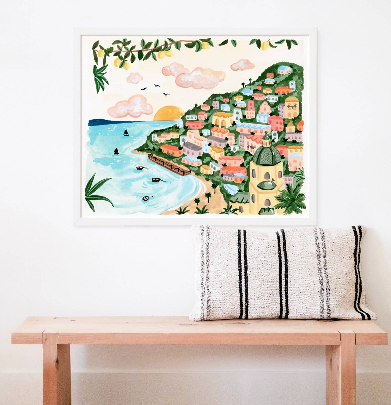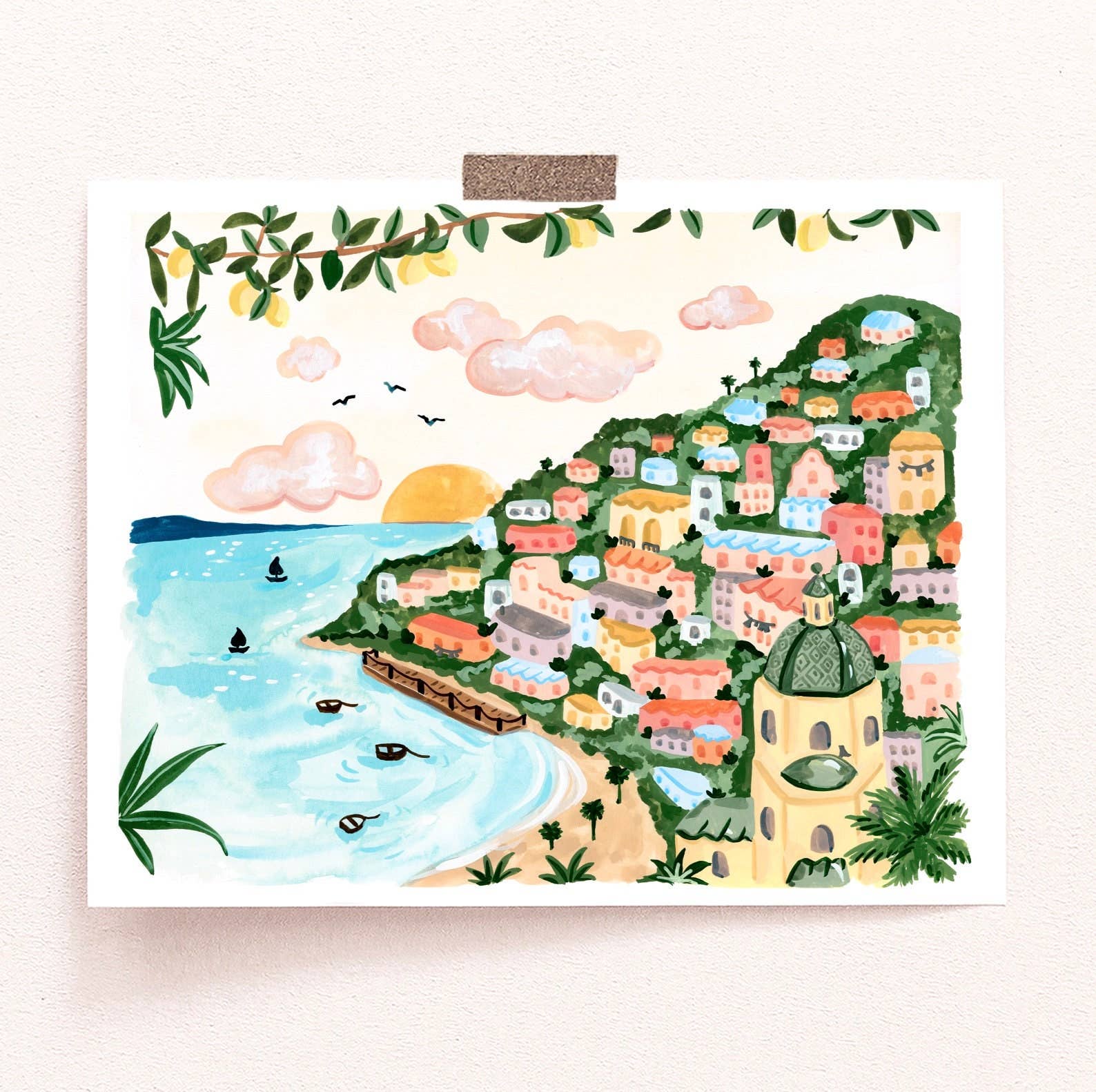 Amalfi Coast Print, Positano Beach Print, Illustration, Travel Prints, Kids Room Decor, Tropical Art Prints, Sabina Fenn, Beach Art