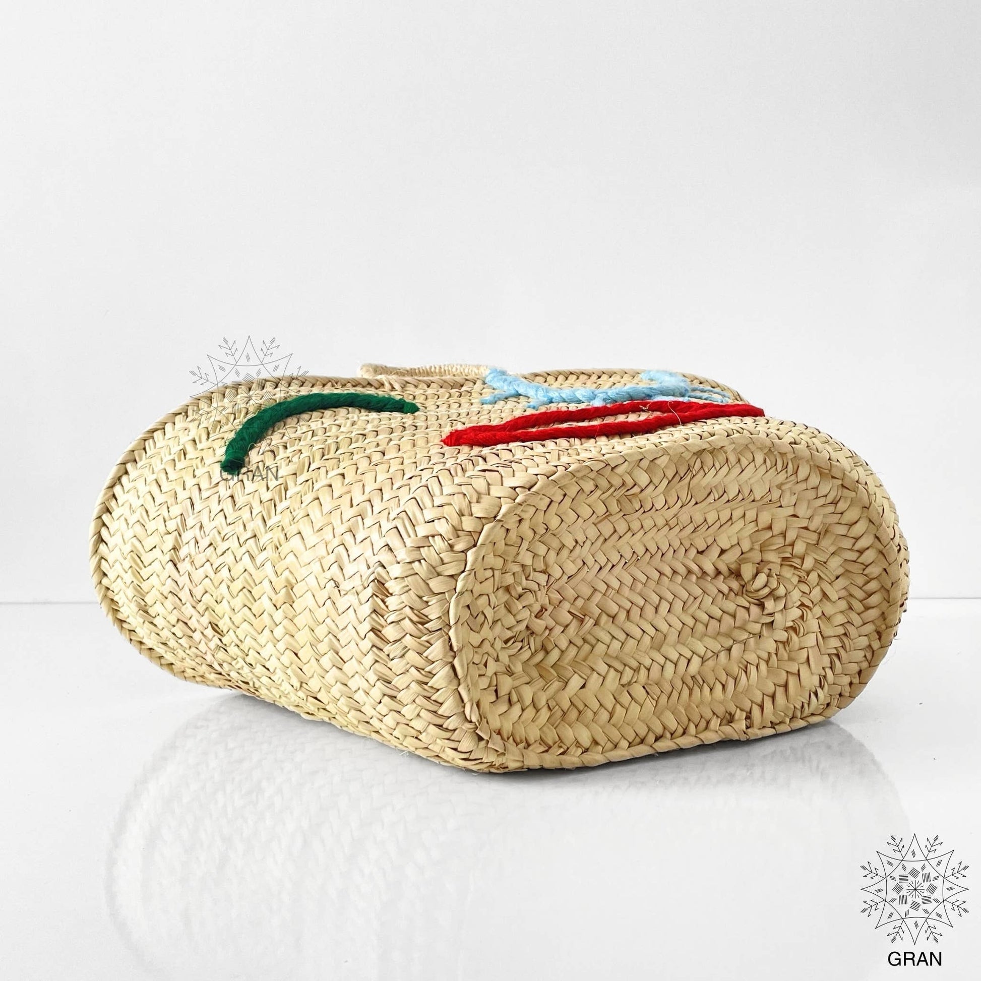 Elevate your summer style with our custom embroidered straw bags, available in five vibrant designs. Handwoven from sturdy straw, each bag features colorful embroidery, including playful motifs like watermelon slices, daisies, and rainbows. Perfect for beach outings or casual events, these bags offer both style and functionality. Key Features: - Material: Handwoven straw - Handles: Short straw handles for easy carrying