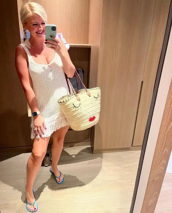 Wink Market Basket, Beach Basket Bag With Leather Handles