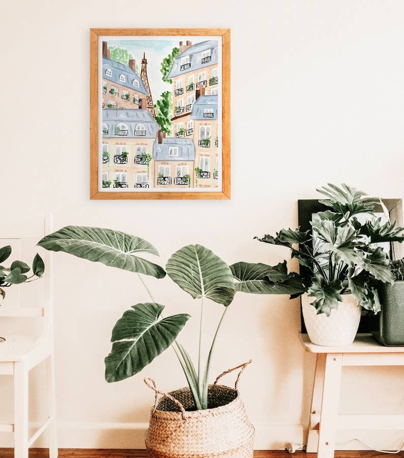 Parisian Buildings Art Print, Paris Scene Illustration, Pastel Apartments, Eiffel Tower and Trees, Watercolor Giclee Painting, Sabina Fenn