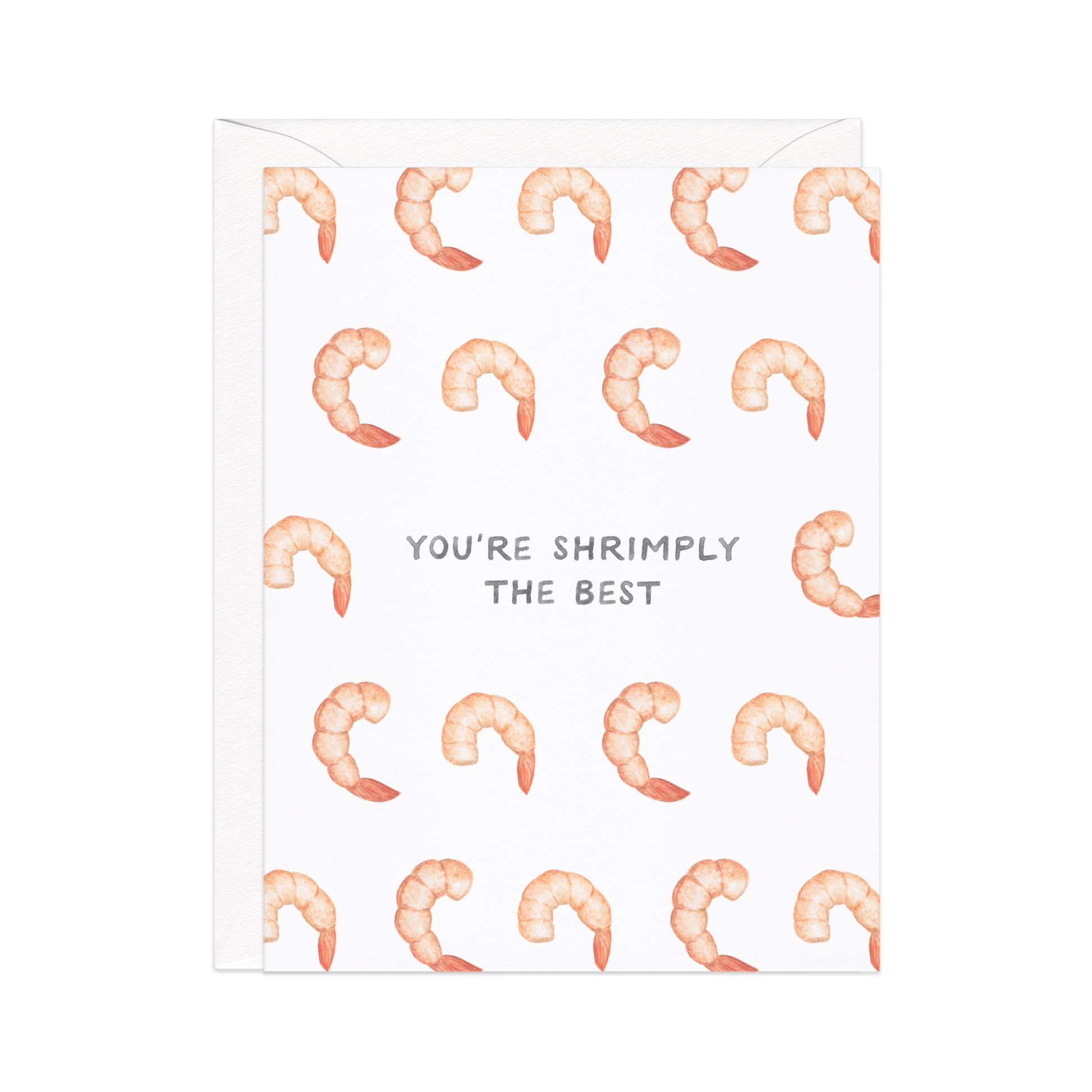 This friendship card features a vibrant shrimp pattern, paried with a funny seafood-inspired pun. Great for: Galentine's Day, Valentine's Day, bffs, thank yous, anniversaries
